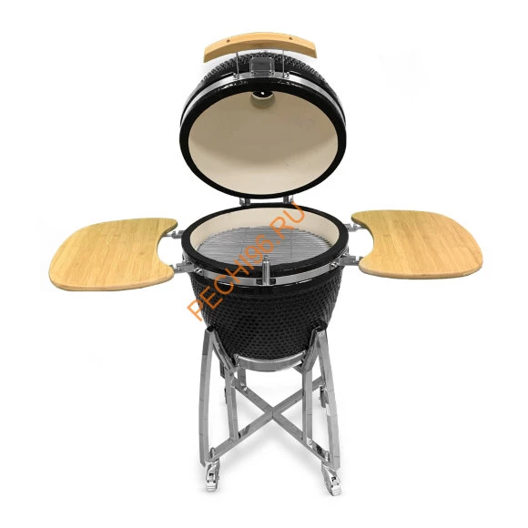 В зависимости от размера гриля, в нем можно одновременно готовить от двух небольших стейков до полноценного обеда на 3-4 человек. Качественная керамика во время нагрева хорошо запасает тепло, а по окончании горения угля долго остается горячей и поддерживает высокую температуру внутри гриля. Верхняя крышка гриля открывается с помощью ручки из бамбука, расположенной на передней поверхности керамического гриля. Массивный керамический гриль ВЕЗУВИЙ хорошо сохраняет тепло, помогает готовить вкусные блюда на открытом огне и украшает садовый участок или загородный дом. Диаметр 550 мм.
