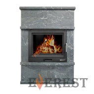 - Объемная топочная камера вмещает поленья большого объема, при этом для удобства загрузки предусмотрена дополнительная глухая боковая дверца. Для фиксации дров и защиты стекла от повреждений в передней части топки установлена съемная чугунная решетка.