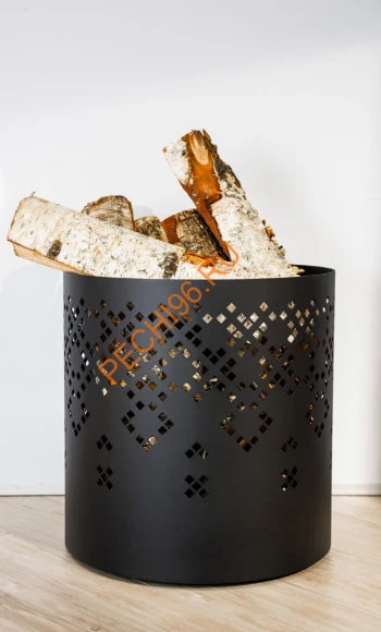 Для удобного хранения дров возле камина или печи, Чешский производитель Fire&Wood выпустил целую серию стальных цилиндрических дровниц. Модель London отличается оригинальным просечным рисунком, имеет прочное полимерное покрытие корпуса, на основании установлены три небольших колеса для удобного перемещения. На стенках нанесен просечной рисунок, в таком же стиле можно купить каминный набор Epsy 1, для ухода и обслуживания каминной топки. Гарантия производителя 1 год.