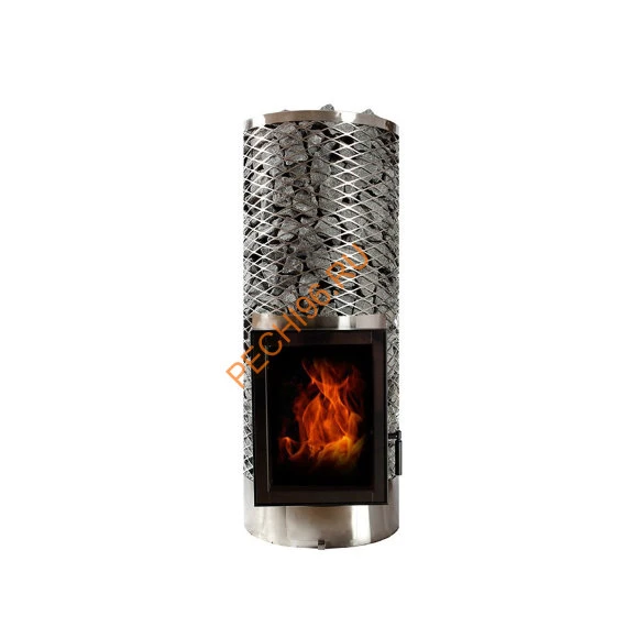 Дровяная печь IKI KIVI изготовлена в сотрудничестве с дизайн-студией dSign Vertti Kivi & Co. Основная цель проекта - добавить в сауну яркость живого огня. Для этого дверца топки сделана стеклянной и высокой. Грейтесь в бане, наблюдая за игрой всполохов пламени. Форма колонны позволяет использовать пространство в парилке максимально эффективно. Мощная печь и стильный объект для украшения интерьера бани. По запросу, возможно изготовить сетчатый корпус черного цвета.