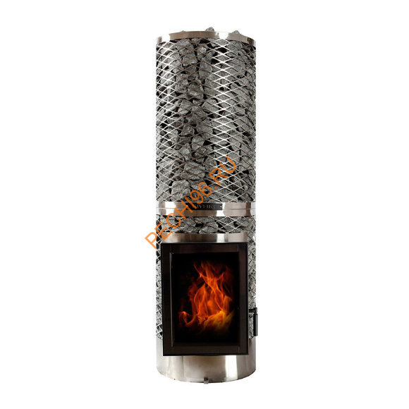 Дровяная печь IKI KIVI изготовлена в сотрудничестве с дизайн-студией dSign Vertti Kivi & Co. Основная цель проекта - добавить в сауну яркость живого огня. Для этого дверца топки сделана стеклянной и высокой. Грейтесь в бане, наблюдая за игрой всполохов пламени. Форма колонны позволяет использовать пространство в парилке максимально эффективно. Мощная печь и стильный объект для украшения интерьера бани. По запросу, возможно изготовить сетчатый корпус черного цвета.