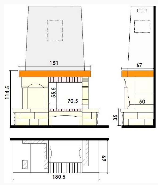 - Эстетика и практичность: Продуманный дизайн учитывает не только эстетические аспекты, но и практичность использования. В нижней части предусмотрено место для хранения и просушки дров, что делает эту облицовку не только красивой, но и функциональной.