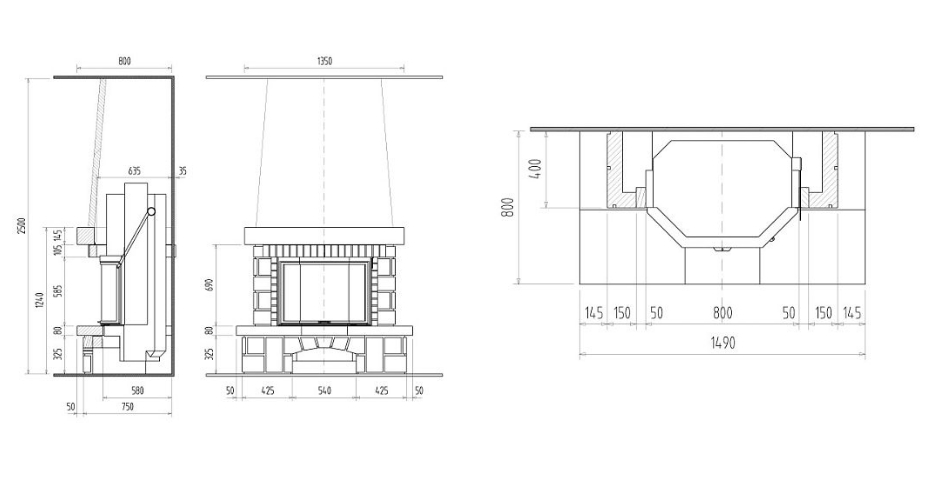 - Монтаж — установка печи, камина или котла, монтаж дымохода, изоляция перекрытий и стен, вывод через кровлю, при необходимости облицовка, короба, декоративная отделка.