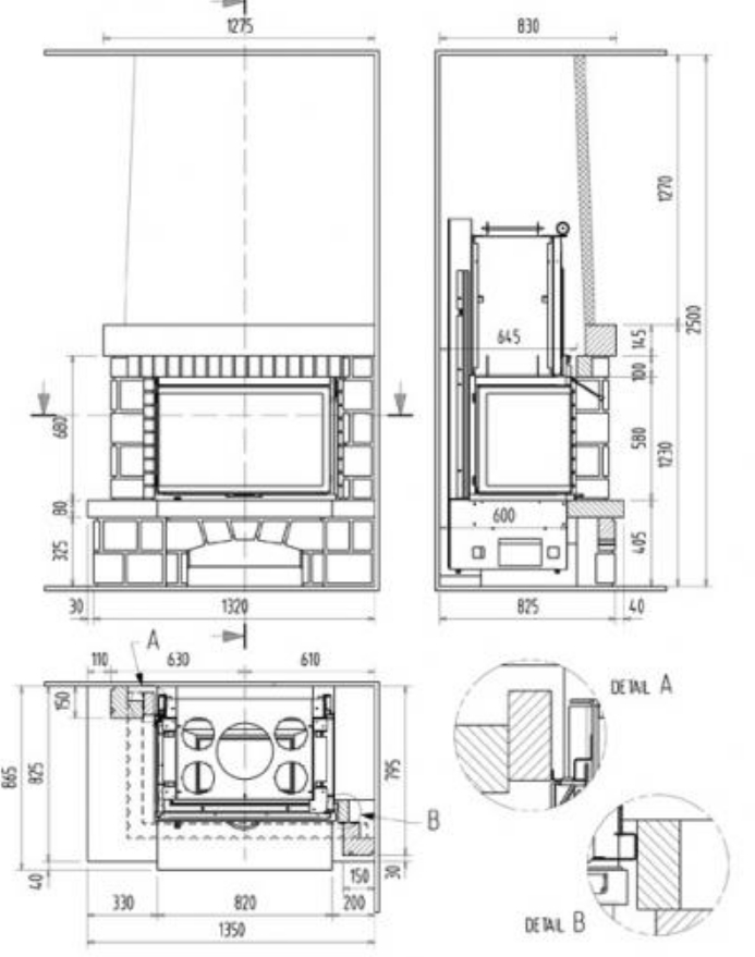 - Монтаж — установка печи, камина или котла, монтаж дымохода, изоляция перекрытий и стен, вывод через кровлю, при необходимости облицовка, короба, декоративная отделка.