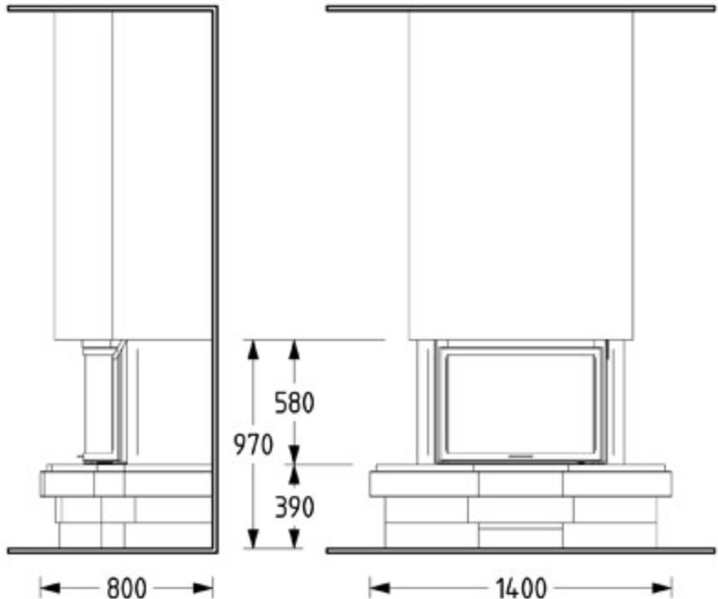 - Монтаж — установка печи, камина или котла, монтаж дымохода, изоляция перекрытий и стен, вывод через кровлю, при необходимости облицовка, короба, декоративная отделка.