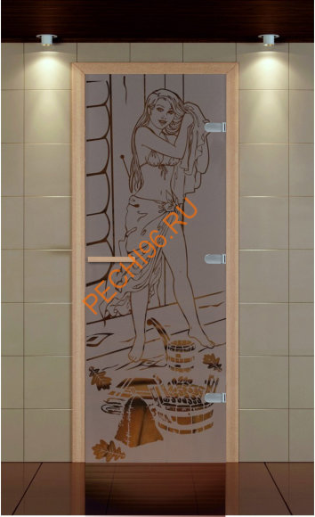 Дверь «Русская красавица» - прекрасный вариант для Вашей сауны. Абстрактный рисунок в виде силуэта девушки смотрится очень органично. Такой вариант двери идеально подойдет под любой интерьер. Стеклянные двери для бани и сауны торговой марки АЛЬДОВУД – сохраняют в помещении необходимый температурный режим, плотно закрываются, не допуская сквозняков и потери пара. Сочетание уникальных технологий обработки стекла и дерева, дает возможность производителю изготавливать стеклянные двери для саун и бань, которые отличаются дорогими комплектующими и высокими эксплуатационными характеристиками.