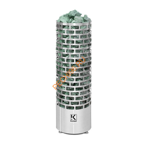 Электрическая печь KARINA Nova 6E – одна из моделей новой линейки, выпущенной в 2018 году. Электрокаменка сможет стать украшением любой сауны, благодаря стильному и интересному дизайну и цилиндрической форме. Печь устанавливается на пол, занимает немного места, и имеет приятную особенность – конструкция дает свободный доступ для полива камней, что позволяет регулировать насыщенностью пара. Любители русских парных поймут – камни снимают жар с раскаленных ТЭНов, не сжигая при этом кислород, а всесторонний доступ к камням помогает выбрать оптимальную влажность воздуха в парилке и интенсивность пара в помещении.