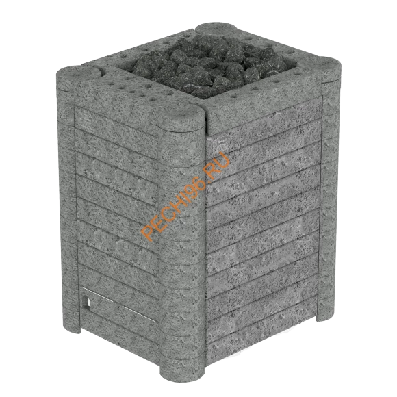 Благодаря каменной поверхности, печь очень быстро прогревает помещение парной объёмом 9-15 кубических метров. Расход электроэнергии при этом весьма экономичен, ведь каменная облицовка длительное время сохраняет тепло. Помимо облицовки из талькохлорита, в данную модель вмещается до 90 кг камней. Это делает площадь испарения поддаваемой на электрокаменку жидкости колоссальной. Вы сможете в считанные мгновения добиться требуемого уровня влажности, наполнив парную легким мелкодисперсным паром.