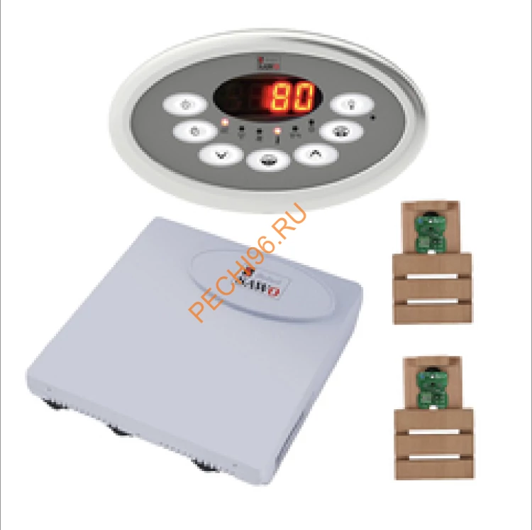 Сверху на каменке имеется четыре чаши из талькохлорита для ароматических масел. Функция автодолива избавит Вас от контроля воды в парогенераторе. С помощью выносного пульта управления регулируется температурный режим в парной. Пульт и блок мощности в комплект не входят и приобретаются отдельно.