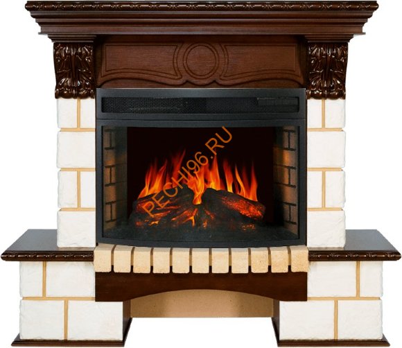 Угловой электрокамин Pierre Luxe – классическая модель, облицованная натуральным камнем. Идеально сочетается с электрическими очагами Royal Flame. Такой каминокомплект станет гармоничным дополнением интерьера городской квартиры или загородного дома. Модель представлена в нескольких вариантах, различающихся как по принципу установки (угловой или пристенный), так и по цветовым решениям облицовочного камня и деревянных элементов. Декорирована резными вставками в античном стиле.