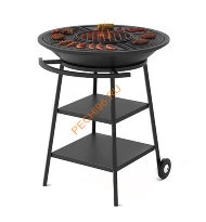 Удобство и функциональность в газовом гриле ВЕЗУВИЙ обеспечиваются за счет боковых стеллажей, на них удобно хранить инвентарь и посуду, ингредиенты для приготовления блюд, и за счет установленных пластиковых колес, облегчающих транспортировку и перемещение гриля по участку.