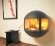 - Пристенный подвесной камин оригинальной формы с трубой в стене.