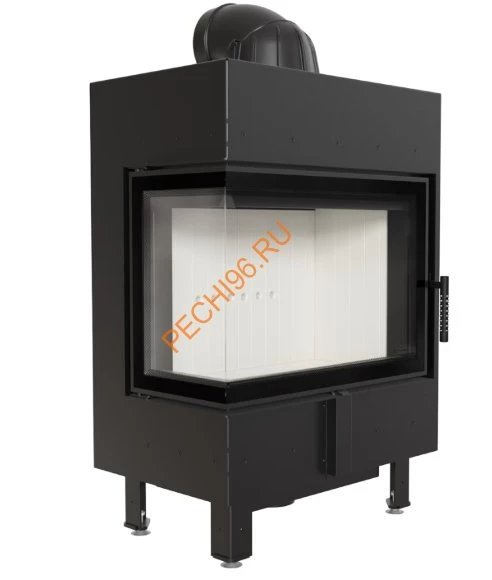 Съемная решетка и поддон для золы облегчают поддержание топки в чистоте. Благодаря системе clean glass происходит ограниченное отложение сажи. Воздушная завеса отделяет стекло от камина. Благодаря этому он не загрязняется и отдает больше тепла в помещение. Возможность компенсировать неровности основания и выровнять топку благодаря регулируемым ножкам. Модель оснащена подвижным выпуском выхлопных газов, поэтому при монтаже нет необходимости приобретать дополнительные отводы. Вы можете легко регулировать угол соединения вставки с установкой дымохода.
