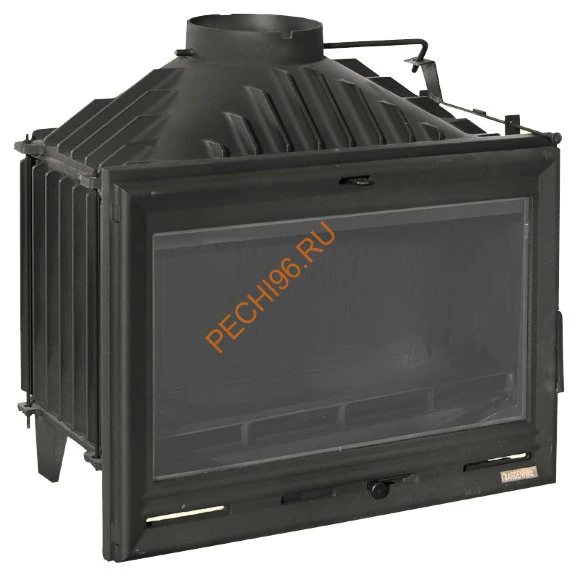 Каминные топки серии Ardenfire, выполненные из чугуна увеличивают теплоотдачу за счет увеличения площади тепловоспринимающей поверхности и прочности изделия. Двойной контур топочной камеры повышает долговечность и теплоотдачу. Выдвижной зольный ящик позволяет удалять золу, не прекращая горения. Регулятор подачи воздуха дает возможность экономично расходовать топливо. Предназначена для помещений объемом до 250 м3.