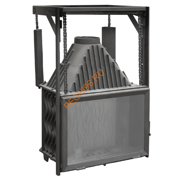 Каминные топки серии Ardenfire, выполненные из чугуна увеличивают теплоотдачу за счет увеличения площади тепловоспринимающей поверхности и прочности изделия. Двойной контур топочной камеры повышает долговечность и теплоотдачу. Выдвижной зольный ящик позволяет удалять золу, не прекращая горения. Регулятор подачи воздуха дает возможность экономично расходовать топливо. Предназначена для помещений объемом до 300 м3.