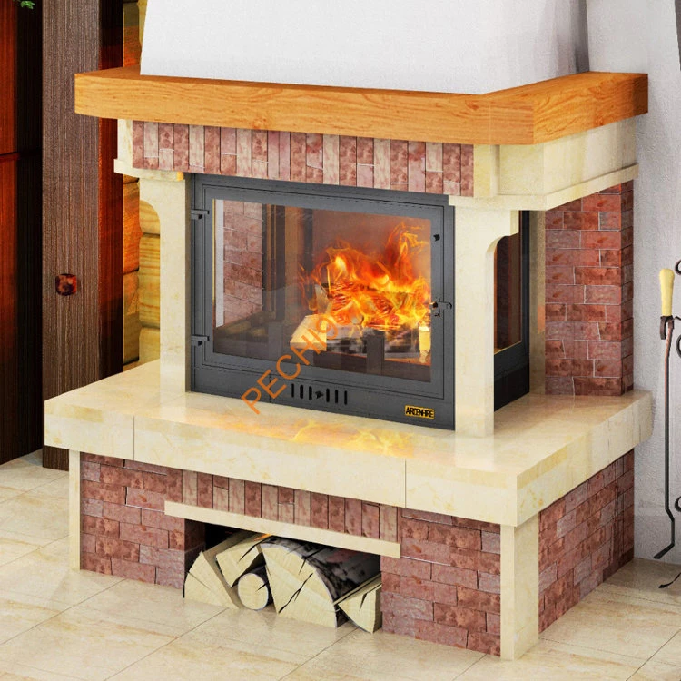 Каминные топки серии Ardenfire, выполненные из чугуна увеличивают теплоотдачу за счет увеличения площади тепловоспринимающей поверхности и прочности изделия. Двойной контур топочной камеры повышает долговечность и теплоотдачу. Выдвижной зольный ящик позволяет удалять золу, не прекращая горения. Регулятор подачи воздуха дает возможность экономично расходовать топливо. Предназначена для помещений объемом до 200 м3.