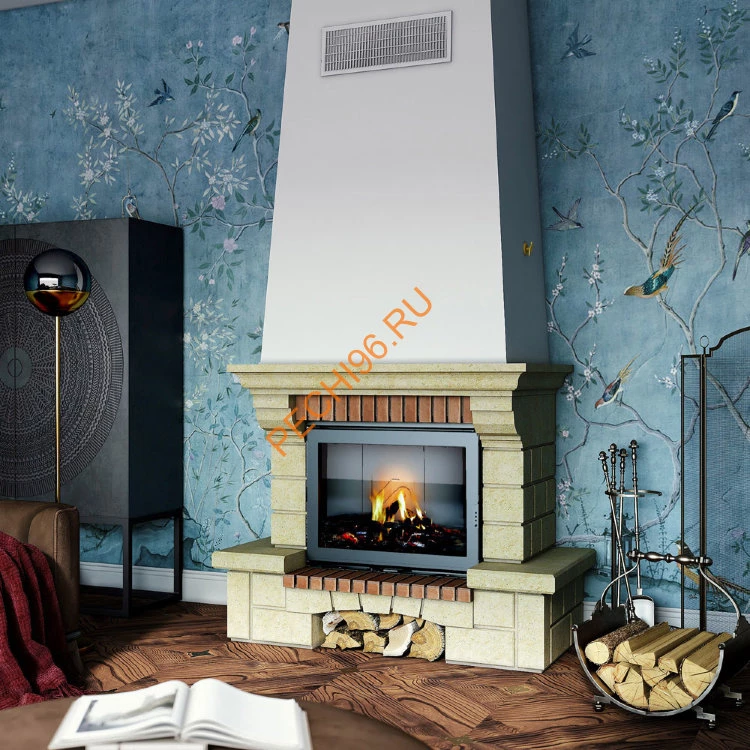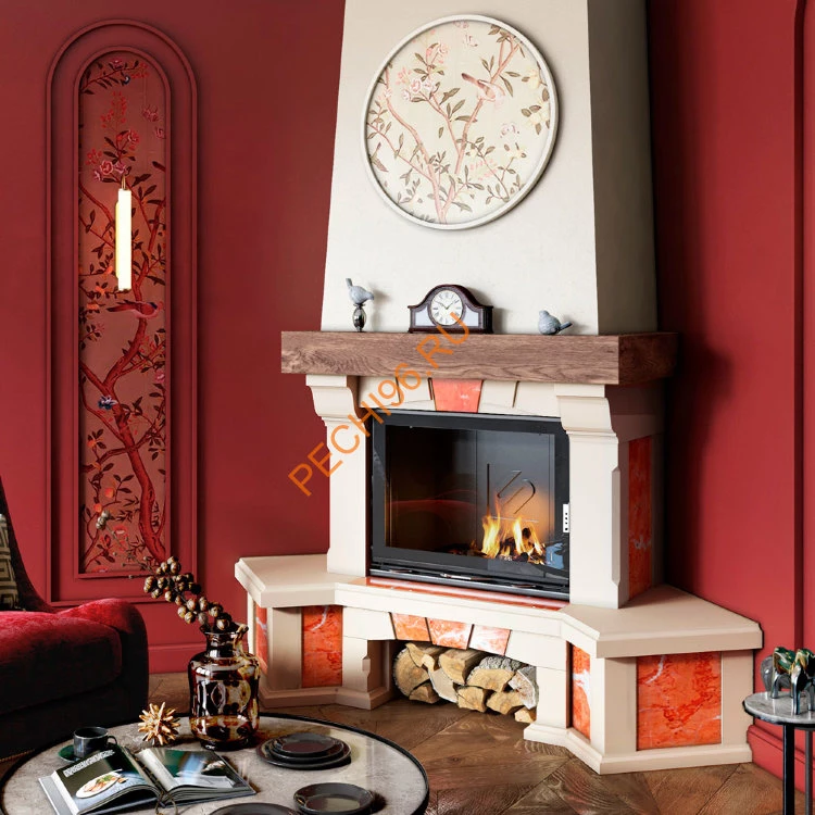 - Монтаж — установка печи, камина или котла, монтаж дымохода, изоляция перекрытий и стен, вывод через кровлю, при необходимости облицовка, короба, декоративная отделка.