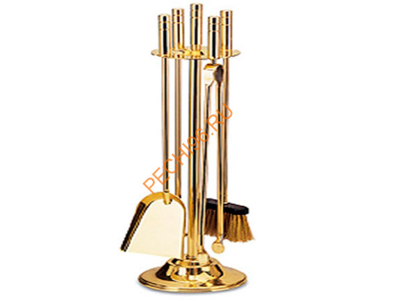 Оригинальный каминный набор Comex 10.183 в подставке из латуни, в которой размещены щетка, щипцы, совок и кочерга, помогающие в топке и уборке домашнего дровяного камина. Набор отличается повышенной термоустойчивостью, прочностью и надежностью. Стильный дизайн и золотой цвет комплекта гармонично впишется в любой стиль оформления каминного уголка.