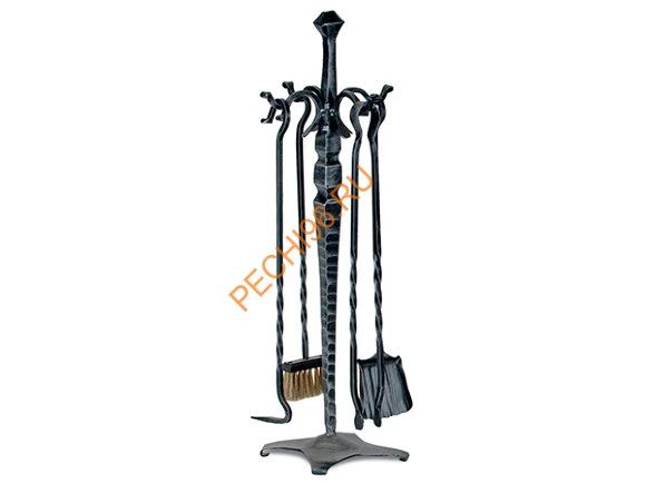 Каминный набор Comex К219 на подставке из кованой стали, в которой размещены щетка, щипцы, совок и кочерга, помогающие в топке и уборке домашнего дровяного камина. Кованая сталь придает комплекту элегантный старинный стиль. Набор отличается повышенной термоустойчивостью, прочностью и надежностью. Дизайн комплекта гармонично впишется в каминный уголок в винтажном стиле.