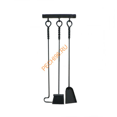 Каминный набор из стали, в котором размещены щетка, совок и кочерга, помогающие в топке и уборке домашнего дровяного камина. Черный цвет изделия и витые рукоятки придают комплекту элегантный стиль. Набор отличается повышенной термоустойчивостью, прочностью и надежностью. Дизайн комплекта гармонично впишется в каминный уголок в винтажном стиле.