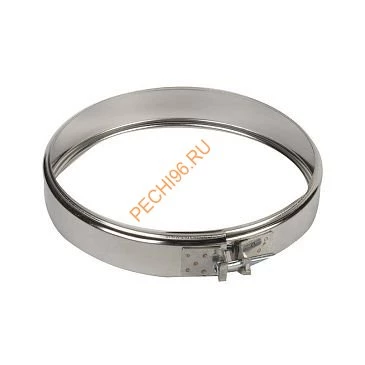 Хомут предназначен для крепления элементов дымохода, используется для улучшения герметизации на стыках.При изготовлении дымоходов используется сталь AISI 439 с содержанием титана. Благодаря стабилизации титаном увеличивается температура окалинообразования, которая равна 800-1000С. Также добавление титана препятствует выжиганию лигирующих элементов, благодаря этому прочность шва увеличивается, он меньше подвержен коррозии. При соблюдении СНИП дымоход из данного материала будет служить Вам до 10 лет. Идеальная геометрия дымохода гарантирует отличную стыковку и жесткость конструкции, легкость сборки и монтажа, без больших механических усилий. В дымоходах УМК используется раструбная система стыковки. При раструбной системе стыковки отсутствует заужение диаметра в местах стыка, что препятствует излишнему образованию сажи.