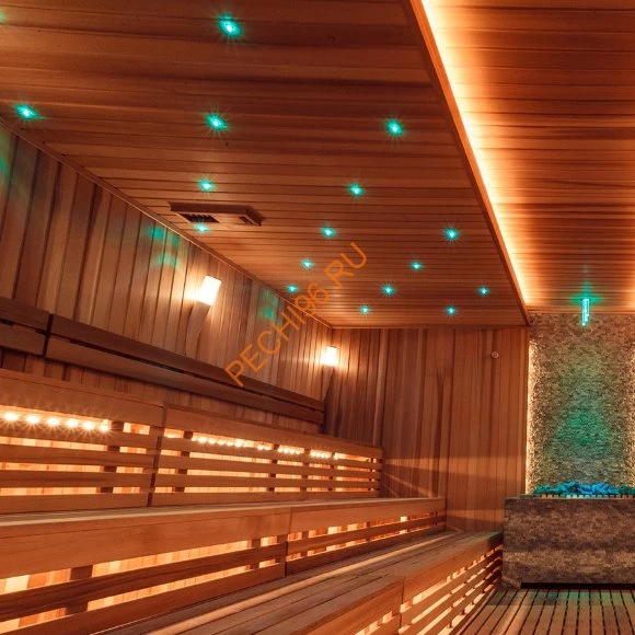 Набор Aurora позволяет создать RGB-освещение в термальной зоне под ключ. Создайте в сауне или хамаме непередаваемую атмосферу с помощью звездного неба. Использование в сауне возможно только с электрическими печами!