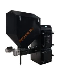 Горизонтальные теплообменники - визитная карточка котлов FACI. Конструкция котлов такова, что отходящие газы от сгоревшего топлива многократно проходят ВОКРУГ цилиндрических теплообменников. Это позволяет произвести максимальный теплосъем с отходящих газов и добиться КПД более 93%. Эксплуатация котла максимально сведена к простоте и удобству. Бункер котла вмещает в себя не менее 500 кг угля, а геометрия бункера спроектирована таким образом, чтобы уголь в нем не зависал. Двухслойная усиленная спираль шнека, в совокупности с мотор редуктором повышенной мощности, доставляет уголь фракцией до 50 мм в горелку и способна разламывать попадающие в бункер фракции большего диаметра.