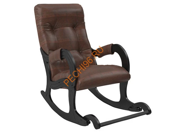 Боковины и подлокотники из дерева покрыты качественной эмалью. Кресло-качалка имеет удобную складную подножку. Особый комфорт создают эргономичная форма сиденья и спинки. Кресло-качалка имеет обивку из экокожи коричневого цвета (Antik Crokodile) и черные эмалированные подлокотники. Модель кресла отлично подойдет для дизайна богатой гостиной с камином в классическом стиле.