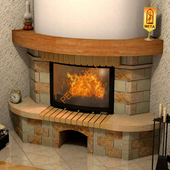 Угловая облицовка из натурального мрамора придаст особый стиль камину и создаст необыкновенную атмосферу в Вашем доме. Отличным дополнением является декоративная балка, изготовленная из массива ценных пород деревьев. Для дров имеется небольшая, но вместительная дровница.