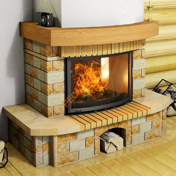 На выбор заказчика представлены два вида мрамора – «Крема Нова» (Антик) и «Галала». Также в конструкции предусмотрены защитные панели, выполненные из шамотного кирпича. Шамот отлично защищает основу от термического воздействия, создаваемого топкой.