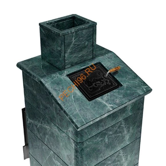 Змеевик - название камня напрямую связано с его необычной раскраской, очень похожей на раскраску змеиной кожи: характерные пятна и прожилки на зеленовато-жёлтом или тёмно-зелёном фоне. Влажный пар и высокие температуры в условиях русской парной подвергает большим испытаниям банную печь и ее облицовку в долгосрочной эксплуатации. Повышенная влажность с экстремальными перепадами температуры губительно отражается на кирпичной конструкции и приводит к разрушению уже в скором времени. Природный камень в качестве облицовки печей считается хорошей альтернативой за его прочность при длительной эксплуатации и эффективность. Змеевик выгодно отличается от кирпичной кладки с цементным раствором своими свойствами. Природный камень в облицовке обеспечивает гораздо большую скорость разогрева до нужной температуры без необходимости многочасовой подготовки печи. По своему химическому составу Змеевик - силикат магния с содержанием магнетита, карбоната, талька и других минералов. Змеевик оказывает положительное воздействие на организм человека: снимает боли в шее и голове; стабилизирует тонус; успокаивает; лечит при простуде; устраняет воспаление.