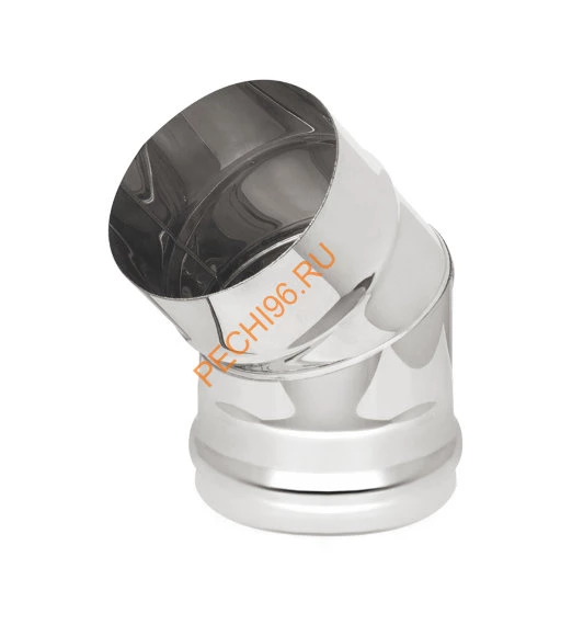 Поворотное колено используется для изменения направления труб дымохода на угол 45 градусов. Трубы изготовлены из нержавеющей стали. Монтируются с любыми видами печей, каминами и котлами, использующими твердое топливо. Изготовлены из стали AISI 430, с рабочей температурой до 600 градусов, устойчивой к кратковременным температурным нагрузкам до 800 градусов, обладающей повышенной сопротивляемостью к коррозии в агрессивной среде.