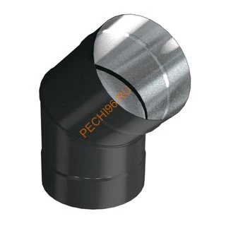 Отвод 45° из окрашенной в чёрный цвет нержавеющей стали, с раструбно-профильным соединением элементов, без изоляции, для монтажа угловых участков дымохода.