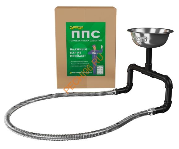 Паровая пушка Сабантуй предназначена для доставки воды на самые раскаленные участки каменки, с целью получения мелкодисперсного пара. Пушка устанавливается на большинство существующих печей без изменения конструкции, для этого необходимо достать часть камней из каменки и установить изделие, затем уложить камни обратно.