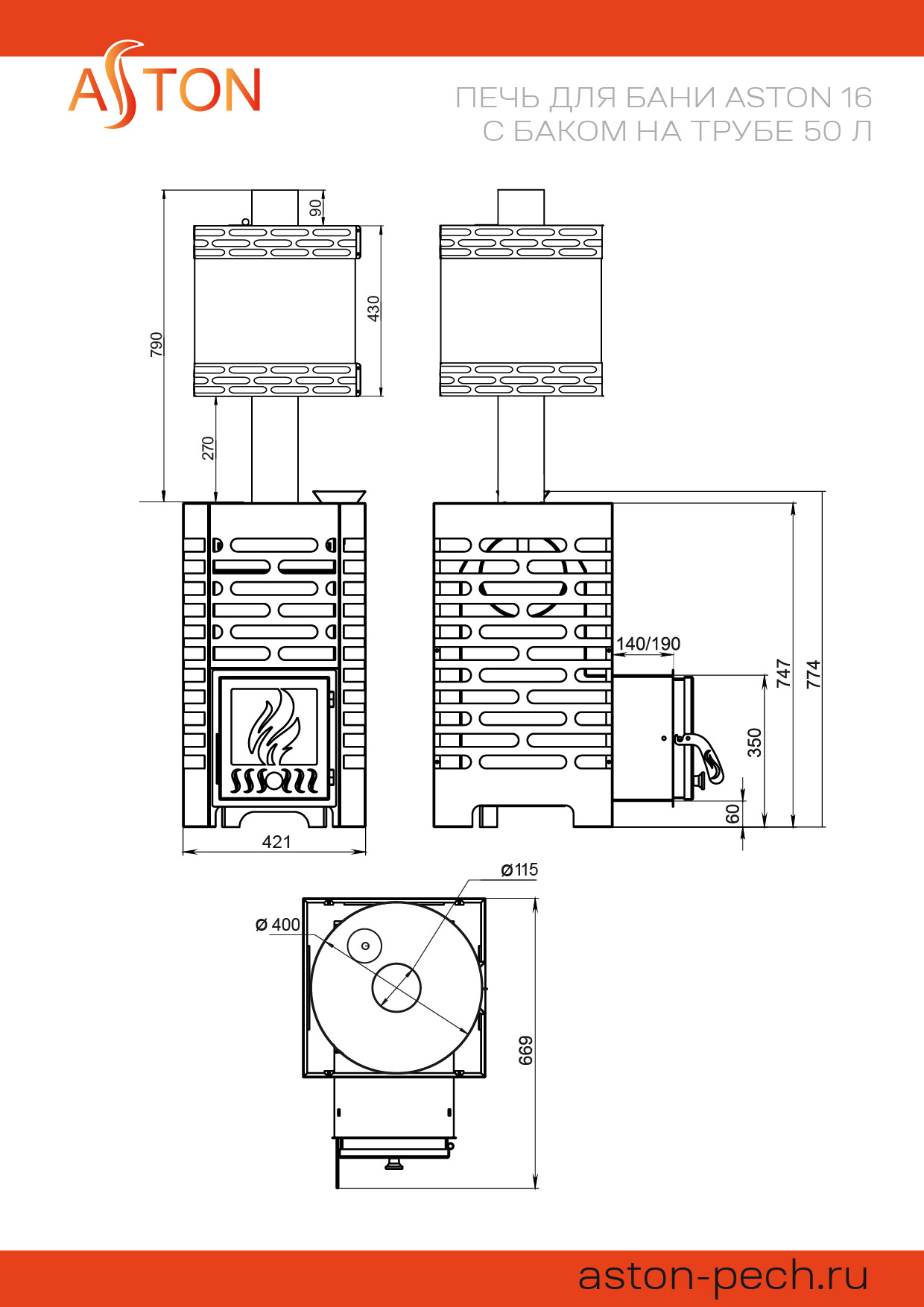 Печь банная Aston 16 с баком на трубе 50л, D115 (AISI 439) круглый купить по выгодной цене в Екатеринбурге за 29 720 руб.: подробное описание, фото и отзывы реальных покупателей, характеристики, возможность скачать инструкции по монтажу и подобрать аксессуары