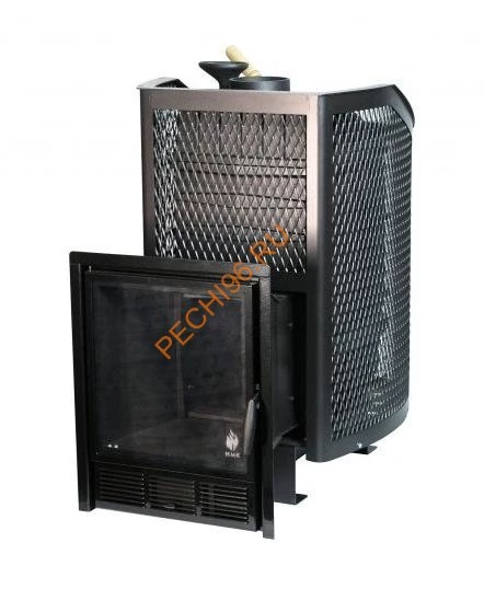 - Эстетичность: благодаря наличию закрытой и открытой каменки, печь имеет утонченный внешний вид, а сетка-высечка и увеличенная панорамная дверца с тонкой рамкой делают дизайн печи и банного помещения более современным;
