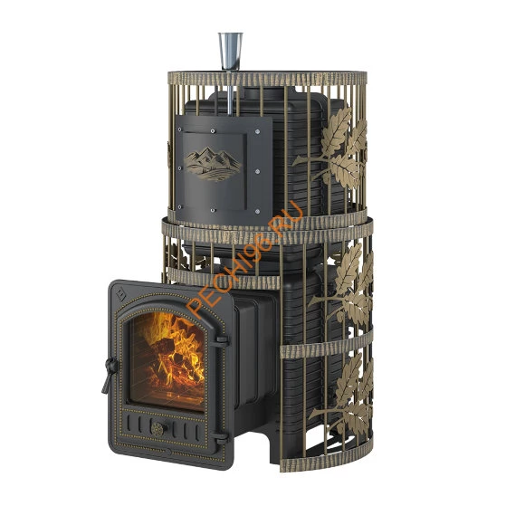 Для увеличения площади теплоотдачи по всей поверхности печи устроено оребрение, за счёт которого чугун быстрее отдаёт тепло в окружающее пространство и способствует ускорению нагрева парной, каменного заклада и облицовки печи. Топочная часть и каменка при установке печи могут быть повёрнуты друг относительно друга. Это позволяет направить отверстие каменки в парилке в удобную сторону.