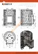 Каменка рассчитана на 25 кг камня для бани мелкой и средней фракции. Воду подают в каменку с помощью двух заливных воронок, посредством которых вода попадает на нижний и средний ярусы уложенных камней. Пар выходит через верхнюю крышку с отверстиями. Крышка печи и каменка – съёмные элементы, которые позволяют ухаживать за топкой и каменкой. В крышке топки есть два прочистных отверстия для обслуживания дымохода и верхней части каменки. Отверстия закрыты стальными заглушками.