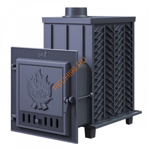 Гефест GFS ЗК 30 - печь с усиленной каменкой большей массы, с единым углублением внутрь топки для дополнительной укладки чугунного заряда. Теплосъемные шипы, со стороны горения пламени, в разы увеличивают площадь соприкосновения огня с каменкой и ускоряют передачу тепла, а также способствуют лучшему дожигу смешивая потоки пламени и воздуха поступаемого из воздушника. Эти усовершенствования значительно повышают мощность парообразования печи и выдают большее количество пара при непрерывной подаче воды. Каменка печей Гефест-ЗК является незаливаемой. Особая форма помогает за короткое время нагреть заряд свыше 500 0С — только с такой температурой получается легкий мелкодисперсный пар, что крайне важно для создания в парной режима «Русская баня». Конвекционные ребра на боковых стенках увеличивают теплопередачу от горящих дров в парное помещение. За счет этого печь, несмотря на значительную толщину и массу, быстро выходит на режим парения. Чугунные банные печи ГЕФЕСТ — 2-камерные топочные агрегаты, оборудованные системой дожига пиролизных газов, которая быстро нагревает каменку с зарядом или переводит печь в режим длительного горения. Регулируемая длина топочного тоннеля избавит от проблем при прохождении стены любой толщины. Дверцы печей ГЕФЕСТ оснащены жаростойкими стеклами фирмы SHOTT ROBAX (Германия) и керамическим жаростойким уплотнителем. В комплект поставки печей входит зольный ящик из нержавеющей стали. При сборке печи не используются сварные швы и болтовые соединения. Срок службы таких печей более 30 лет, но если в далеком будущем печь выйдет из строя, можно заменить в ней недорогостоящую деталь, а не всю печь.