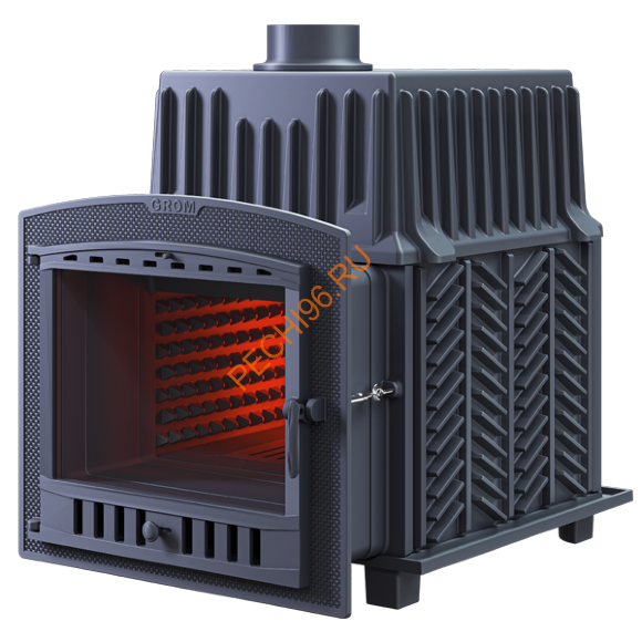 Чугунные банные печи ГЕФЕСТ Гром П изготовлены из легированного жаростойкого чугуна с толщиной деталей до 40 мм. Уникальная конструкция печей делает их одними из самых надежных. «ГЕФЕСТ Гром» отличается каменкой новейшей разработки: несмотря на огромную массу, каменка нагревается в 2 раза быстрее любых других моделей ГЕФЕСТ и длительное время поддерживает набранную температуру неизменной. Печи серии «ГЕФЕСТ Гром» имеют в комплекте чугунную стартовую трубу длиной 500 мм. Заряд в каменке нагревается свыше 500 0С — только с такой температурой получается легкий мелкодисперсный пар, что крайне важно для создания в парной режима «Русская баня». Увеличенная масса, толщина боковых стенок 14мм повышают надежность и теплоаккумулирующую способность, а для быстрого нагрева парной боковые стенки оборудованы конвекционными рёбрами не только снаружи, но и на внутренней поверхности.«ГЕФЕСТ Гром» — печи премиум-класса повышенной надежности для использования в средних и крупных парных, включая коммерческие бани.