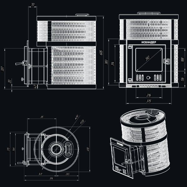 Чугунные банные печи «Искандер» — это современные печи с прямым нагревом парообразователя, рассчитанные на малые и средние размеры парных. Чугунная банная печь «Искандер» предназначена для отопления парного помещения и генерации мелкодисперсного пара. Печь предназначена для использования совместно с кожухом-сеткой с дальнейшей загрузкой камней, увеличивающих теплоёмкость и снижающих тепловое излучение. Печь рассчитана для создания паровых режимов «русская баня» в условиях индивидуального использования. Искандер —печь эконом-класса со стенками толщиной 14 мм быстро нагревает воздух в парной и производит качественный мелкодисперсный пар за счёт теплоёмкой каменки, оснащённой тепло-съёмными шипами на нижней поверхности.