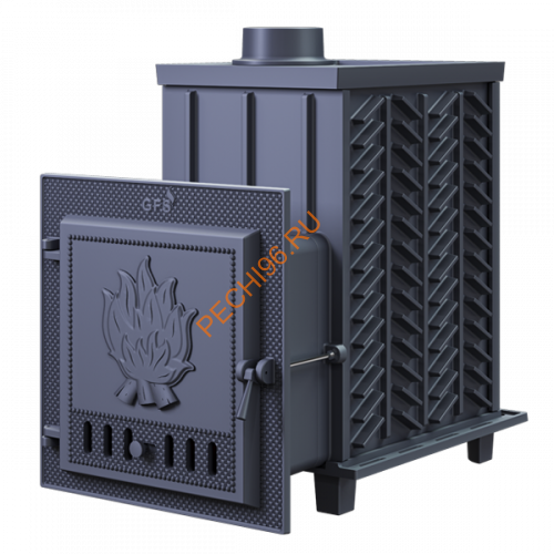 Гефест GFS ЗК 45 - печь с усиленной каменкой большей массы, с единым углублением внутрь топки для дополнительной укладки чугунного заряда. Теплосъемные шипы, со стороны горения пламени, в разы увеличивают площадь соприкосновения огня с каменкой и ускоряют передачу тепла, а также способствуют лучшему дожигу смешивая потоки пламени и воздуха поступаемого из воздушника. Эти усовершенствования значительно повышают мощность парообразования печи и выдают большее количество пара при непрерывной подаче воды. Каменка печей Гефест-ЗК является незаливаемой. Особая форма помогает за короткое время нагреть заряд свыше 500 0С - только с такой температурой получается легкий мелкодисперсный пар, что крайне важно для создания в парной режима «Русская баня». Конвекционные ребра на боковых стенках увеличивают теплопередачу от горящих дров в парное помещение. За счет этого печь, несмотря на значительную толщину и массу, быстро выходит на режим парения. Чугунные банные печи ГЕФЕСТ - 2х-камерные топочные агрегаты, оборудованные системой дожига пиролизных газов, которая быстро нагревает каменку с зарядом или переводит печь в режим длительного горения. Регулируемая длина топочного тоннеля избавит от проблем при прохождении стены любой толщины. Дверцы печей ГЕФЕСТ оснащены жаростойкими стеклами фирмы SHOTT ROBAX (Германия) и керамическим жаростойким уплотнителем. В комплект поставки печей входит зольный ящик из нержавеющей стали. При сборке печи не используются сварные швы и болтовые соединения. Срок службы таких печей более 30 лет, но если в далеком будущем печь выйдет из строя, можно заменить в ней недорогостоящую деталь, а не всю печь.