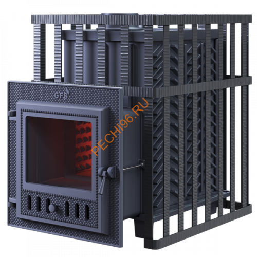 Гефест GFS ЗК в сетке 40МС - печь с усиленной каменкой большей массы, с единым углублением внутрь топки для дополнительной укладки чугунного заряда. Теплосъемные шипы, со стороны горения пламени, в разы увеличивают площадь соприкосновения огня с каменкой и ускоряют передачу тепла, а также способствуют лучшему дожигу смешивая потоки пламени и воздуха поступаемого из воздушника. Эти усовершенствования значительно повышают мощность парообразования печи и выдают большее количество пара при непрерывной подаче воды. Каменка печей Гефест-ЗК является незаливаемой. Особая форма помогает за короткое время нагреть заряд свыше 500 0С - только с такой температурой получается легкий мелкодисперсный пар, что крайне важно для создания в парной режима «Русская баня». Конвекционные ребра на боковых стенках увеличивают теплопередачу от горящих дров в парное помещение. За счет этого печь, несмотря на значительную толщину и массу, быстро выходит на режим парения. Чугунные банные печи ГЕФЕСТ - 2х-камерные топочные агрегаты, оборудованные системой дожига пиролизных газов, которая быстро нагревает каменку с зарядом или переводит печь в режим длительного горения. Регулируемая длина топочного тоннеля избавит от проблем при прохождении стены любой толщины. Дверцы печей ГЕФЕСТ оснащены жаростойкими стеклами фирмы SHOTT ROBAX (Германия) и керамическим жаростойким уплотнителем. В комплект поставки печей входит зольный ящик из нержавеющей стали. При сборке печи не используются сварные швы и болтовые соединения. Срок службы таких печей более 30 лет, но если в далеком будущем печь выйдет из строя, можно заменить в ней недорогостоящую деталь, а не всю печь.