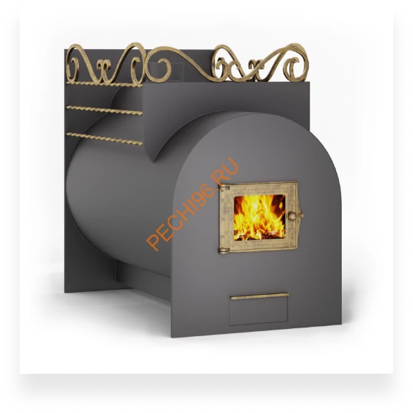 Одним из самых популярных видов печей до сих пор остается так называемый самоварный тип печи. Среди обширного выбора самоварных печей из тонкого металла (от 4 до 6 мм) очевидно выделяется печи для бани Сабантуй. Печь Сабантуй производится из 9 мм трубы, передняя стенка из 4 мм стали, задняя из 4 мм стали, усиленной до 8 мм. Корзина-каменка украшена коваными элементами - скрученный вяз или вензеля. Дверца печи выполнена из литого чугуна, украшена фирменным логотипом производителя печей Сабантуй и красивым узором, вписывающимся в любой интерьер. Печь оснащена зольным ящиком для удобного извлечения золы и регулировки тяги, а также колосником из литого чугуна. Топки печи Сабантуй имеет жесткую конструкцию, что позволяет установить бак самоварного типа объемом до 100 литров и закладку камней до 180 кг. Печи Сабантуй идеально подходят для деревенских бань.