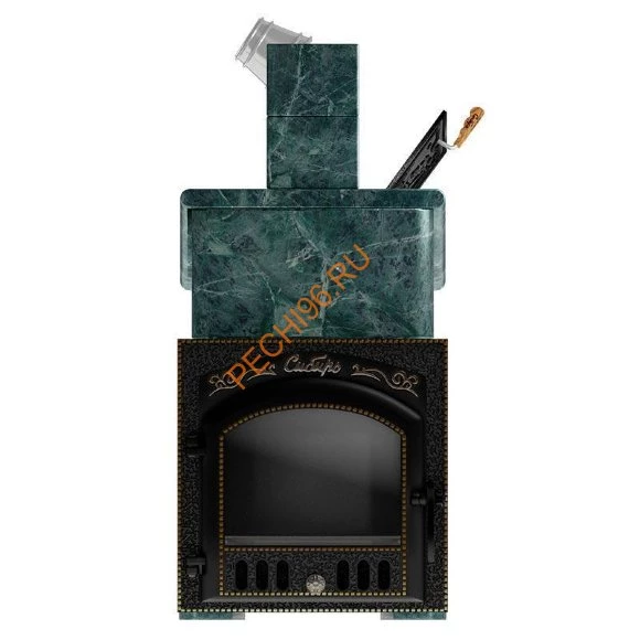 Сибирь Премиум 25 с закрытой каменкой, в облицовке Президент из змеевика – это мощная и одновременно красивая печь! Если Вы искали чугунную печку на века, присмотритесь к этой модели. Срок эксплуатации более 50-ти лет! Печь изготовлена по новейшим технологиям на современном оборудовании. В ней применены уникальные инженерные решения. Печь выполнена из двух металлов – это чугун и сталь, толщина всех стенок 12 мм. Это позволило сделать печь экономически доступной, а надежность и качество не вызывают сомнения. Такое решение дало этой печи дополнительные преимущества перед чисто чугунными печами, и это при более низкой цене. Каждый металл находится на своем месте и выполняет свои функции, а сама печь разрушает стереотипы!