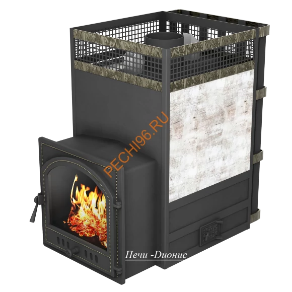 Толстостенная банная печь для Русской бани серии Хоттабыч. Оснащается двойной системой подачи воды в закрытую каменку, эффективной топочной частью, регулируемыми дверцами прочистки и закладки каменки. Печь предназначена для эксплуатации совместно с кирпичным экраном.