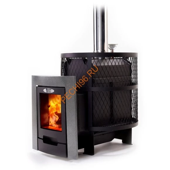 В конструкции применена удобная и практичная схема подачи воды в закрытую каменку, что делает процесс генерации сухого пара внутри закрытой каменки простым и максимально безопасным. Банная печь оснащена стальной дверкой со стеклом, благодаря которому можно наслаждаться горением дров из комнаты отдыха. В печи применяется технология «Чистое стекло» — между стеклом и топкой печи, где происходит горение дров, образуется воздушный зазор, который препятствует оседанию сажи в большом количестве на стекло.