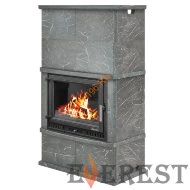 Дровяная печь этой модели бывает в четырех вариантах исполнения: черная сталь, черная сталь + бразильский песчаник, серая сталь + тальк, черная сталь + мокка крем.