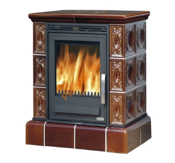 Мощность модели средняя - 7 кВт, что позволяет отапливать помещения объемом до 180 куб. метров. КПД кафельной печи достигает 80% и обеспечивает практически полное сгорание топлива. Красивый кафель надёжно удерживает тепло. Изразцы для печи покрыты блестящей глазурью, что очень украшает эту каминную модель. Внизу герметичной дверцы, находятся ручки для регулировки подачи воздуха в камеру сгорания. За счёт встроенной технологии двойного дожига каминное топливо сгорает практически без остатка. Одна закладка дров может гореть до 6 часов.