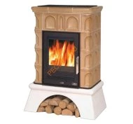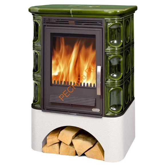 Мощность модели средняя - 7 кВт, что позволяет отапливать помещения объемом до 180 куб. метров. КПД кафельной печи достигает 80% и обеспечивает практически полное сгорание топлива. Красивый кафель надёжно удерживает тепло. Изразцы для печи покрыты блестящей глазурью, что очень украшает эту каминную модель. Внизу герметичной дверцы, находятся ручки для регулировки подачи воздуха в камеру сгорания. За счёт встроенной технологии двойного дожига каминное топливо сгорает практически без остатка. Одна закладка дров может гореть до 6 часов.